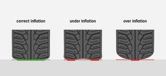 Correct Inflation: Tyre is properly inflated, touching the ground evenly for optimal performance.